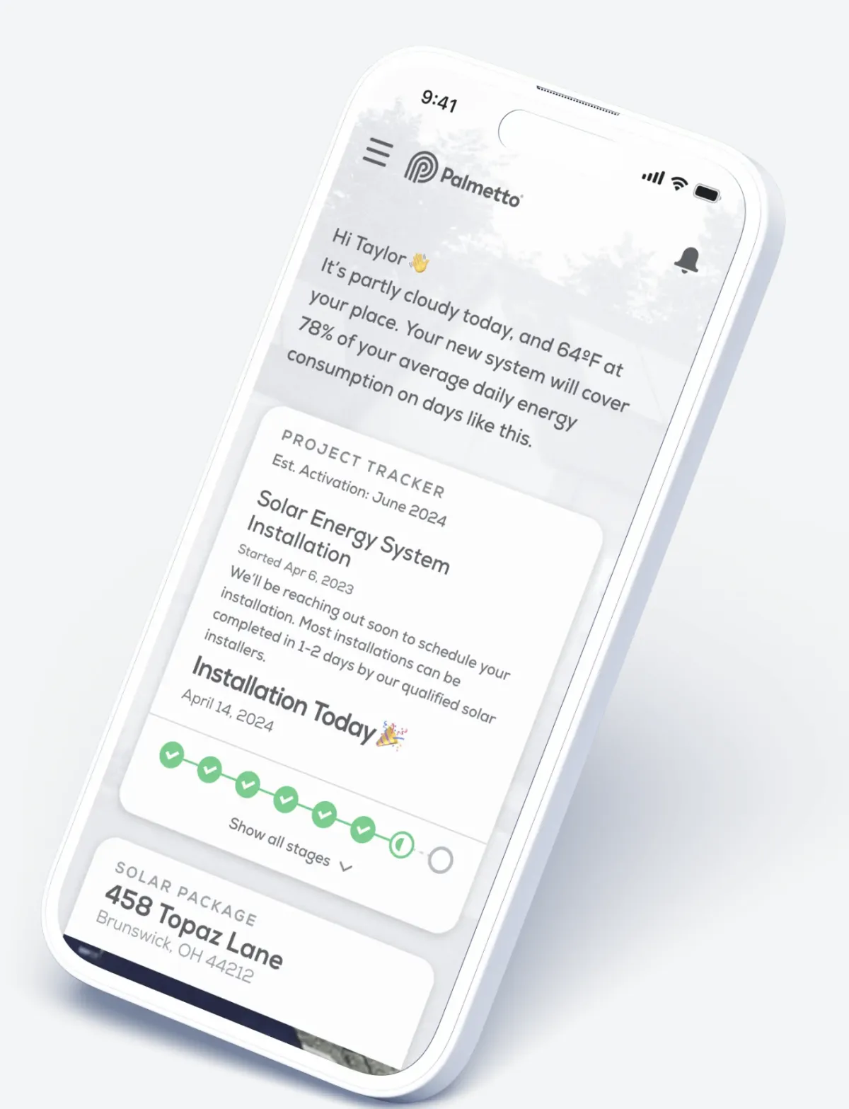 "I went through several quotes for solar panels before landing on Palmetto. Their quote was below other vendors, but it wasn't a decision based on price. I chose them because they explained the product and the process very well. I was then set up with an app for tracking the installation process. I'm so happy I chose a company that cares about customer service!"